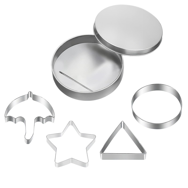 - Multiple Shape Options: This set of cookie cutters includes 4 shapes such as umbrella, triangle, star, and circle, along with a cutting pin and a round storage box. With these tools, baking becomes both convenient and delightful