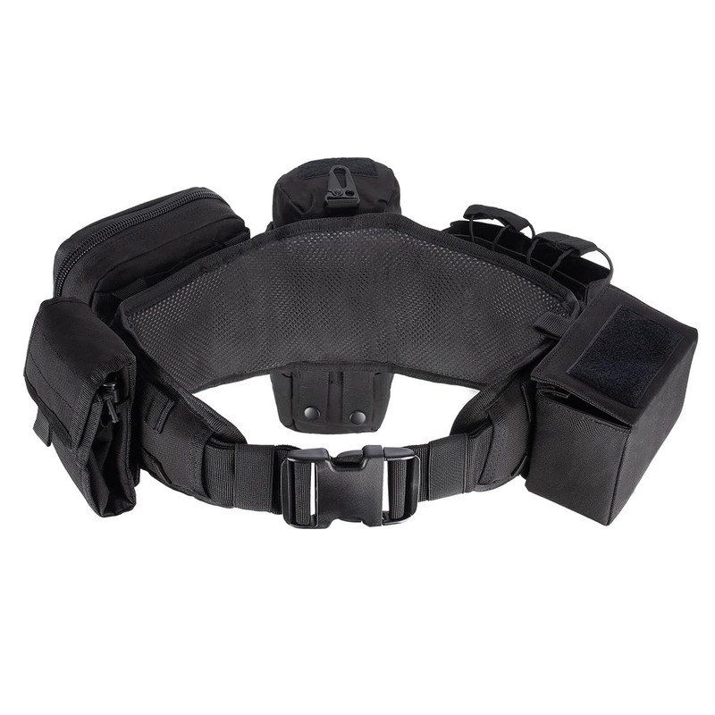 - 7 IN 1 COMBAT BELT:1 Padded Molle Belt+ 1 Built-in fixed belt+ 1 AK/AR mag pouch+ 1 Bottle bag+ 1 Ammunition bag+ 1 Multipurpose bag+ 1 Folding pouch; Minimum waist:90cm/35.4inch; Max waist:125CM/49.2 inch Weight:1.2KG/2.65lb.