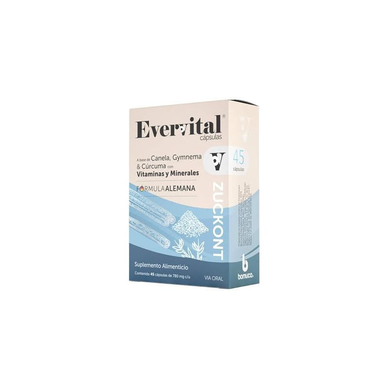 Bomuca - Evervital Zuckont 45 Cpsulas, Suplemento Alimenticio, A base de Canela, Gymnema, Crcuma, Vitaminas y Minerales