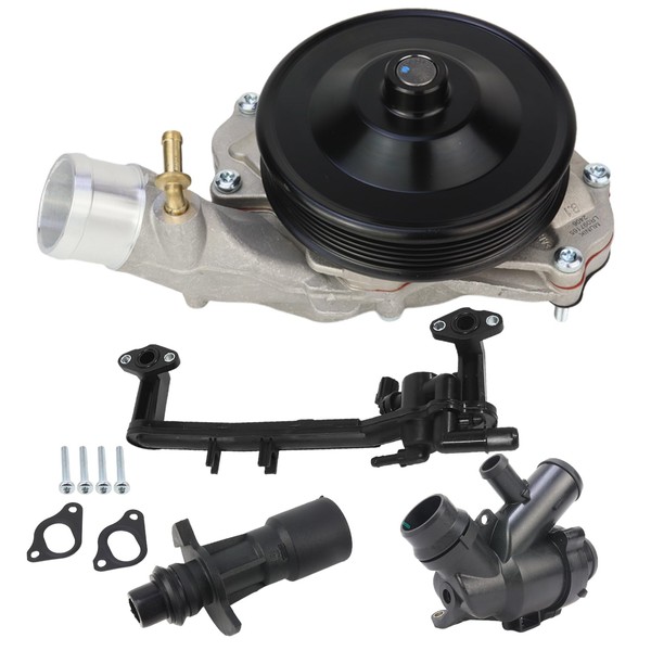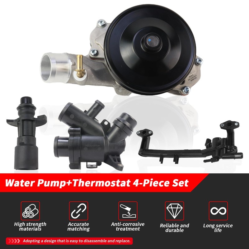Bomunik Water Pump + Thermostat 4-piece set For Range Rover 2013-2022 L319 L462 L560 L322 L405 L320 L494 L663 3.0 5.0 V8 P340 SCV6 SCV8 P525 V8 4x4 Replacement # LR097165, LR028136, LR035124, LR018273