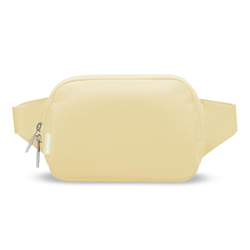 Bomvabe Beige Fanny Pack 1L for Women with 2-way Zipper, Small Belt Bag with Adjustable Strap 53", Fashion Waist Bag with Multiple Pockets, Crossbody Bag for Travel Gym Running Hiking Cycling