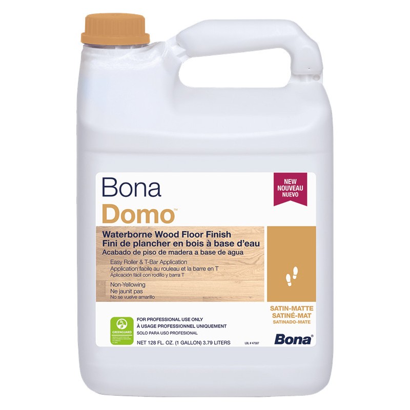 Bona Domo™ is the newest member of the Bona family of finishes. This easy-to-use, residential, light traffic waterborne finish is easy to abrade and has a quick drying formula. Easy and forgiving to apply with a roller or T-bar, the one-component, nonyellowing formulation comprises all essential properties for finishing and protecting wood floors. And because it’s waterborne with low VOCs, Bona Domo provides a healthy environment.