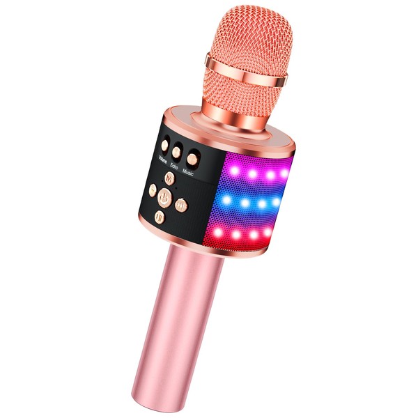 BONAOK Karaoke Microphone for Kids & Adults - Phantom Power Supplies Bluetooth Singing Mic with Disco Lights, Echo Effect, Built-in Speaker Portable for Party Travel Gifts Q78(Rose Gold)