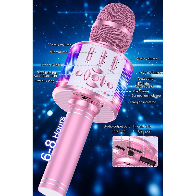 - 【What You Get】1* Portable microphone, 1*Gifting Box, 1*USB Charge Cable, 1* User Manual, 1*Mic Head Cover, lifetime 24-hour warm & friendly customer service. It's a party favor for 4 5 6 7 8 9 10 11 12 years old kids, toddlers, teenagers, girls, and boys. A great gift idea for all kinds of festivals ( Easter, Christmas, Valentine, Halloween, Thanksgiving, New Year, etc).