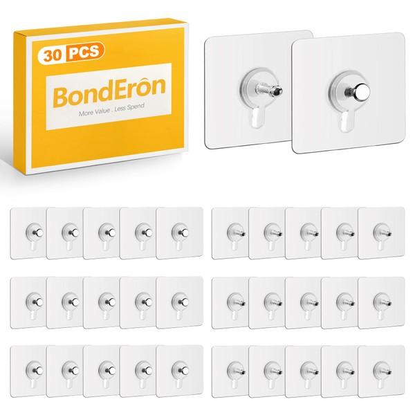 BondEron 30 Stück Klebehaken Bilder Selbstklebend, Bilderhaken Ohne Bohren bis 5kg Tragkraft, Transparente Klebenägel für Bilderrahmen, zum Bilder Aufhängen Ohne Bohren an Wand & Fliesen