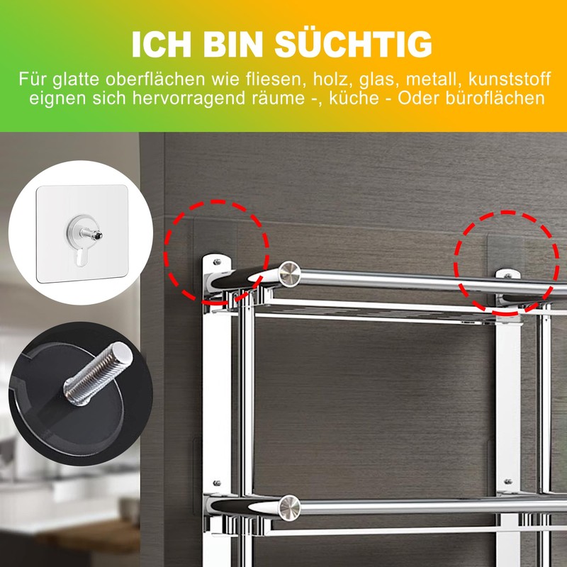- [Vielseitig Einsetzbar] Universelle Anwendung auf glatten Oberflächen wie Fliesen, Glas und Metall (nicht für raue Tapeten geeignet). Perfekte Befestigung ohne Bohren für Küche, Bad, Büro und weitere Räume