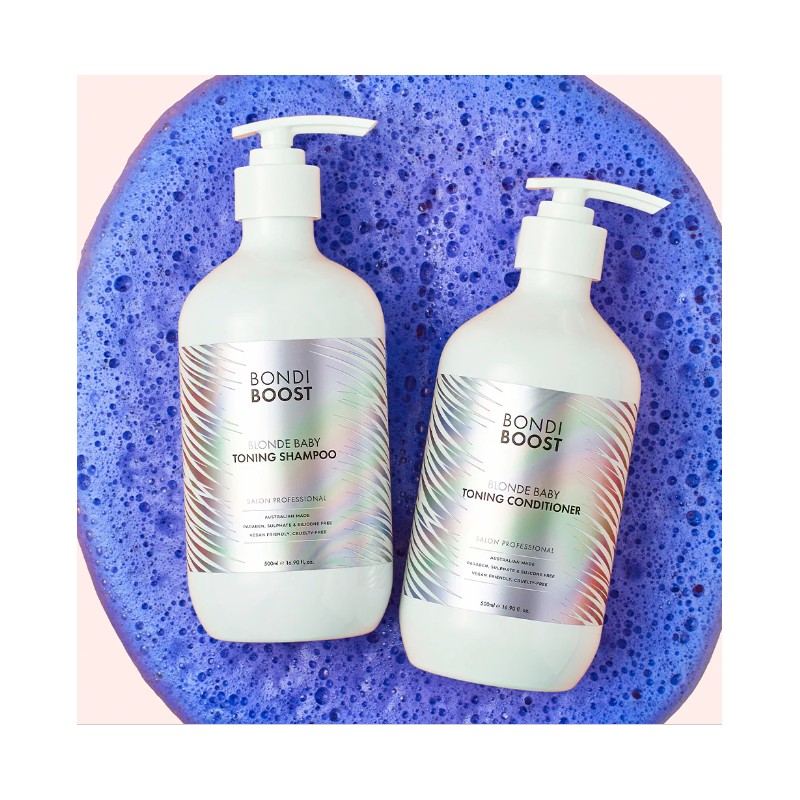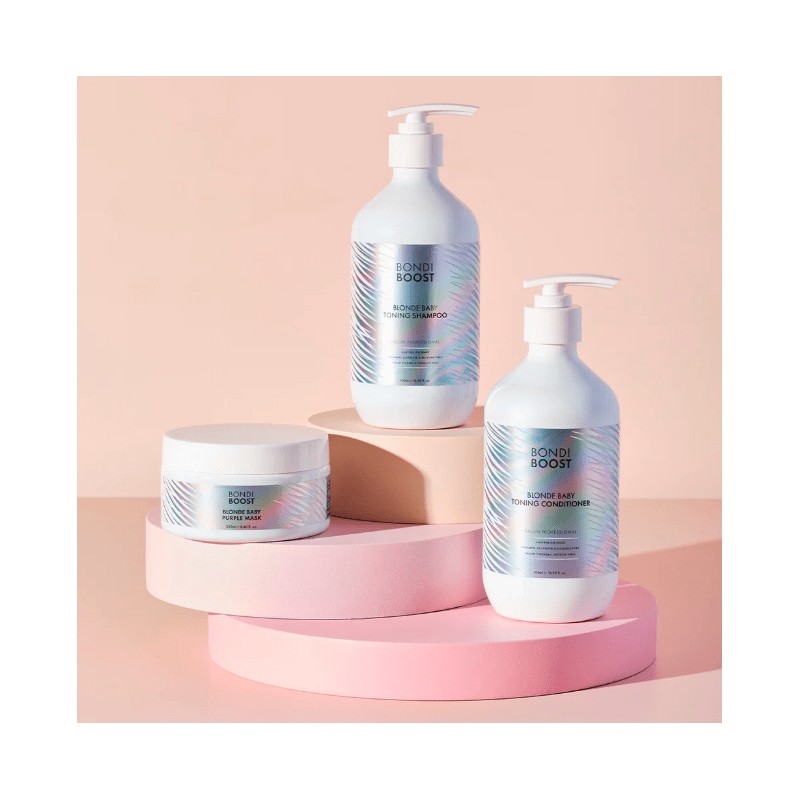 Bondi Boost Blonde Shampoo 500ml is a purple shampoo that gently cleanses and eliminates brassy tones without drying out the hair.