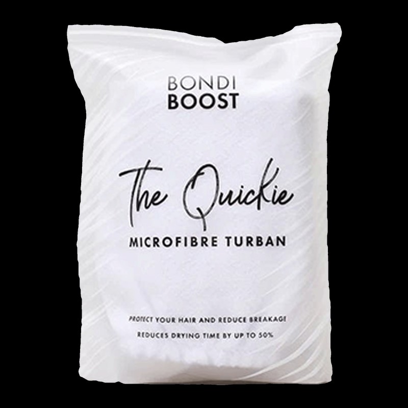 Bondi Boost The Quickie Hair Turban is a super absorbent micro-fibre hair turban that fights frizz and reduces breakage, drying hair 50% quicker than a normal towel.