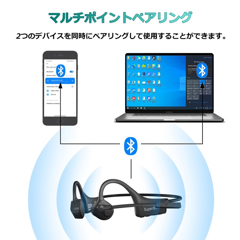 - [Type C rapid charging, up to 8 hours of continuous playback]: The Bone-Conduction Wireless Earphones SuperQ3-Pro have a built-in 200 mAh high capacity battery that charges 2 hours than the Type-C charging cable, allowing you to use music and phone calls for up to 8 hours and enjoy a long day comfortably. With only 10 minutes of charge it will last for 1.5 hours, so you can quickly charge and use it even when you are in a hurry. You can enjoy a long day without having to worry about sudden battery running out of the battery for your daily commute, school, sports, games, running, telework, and more