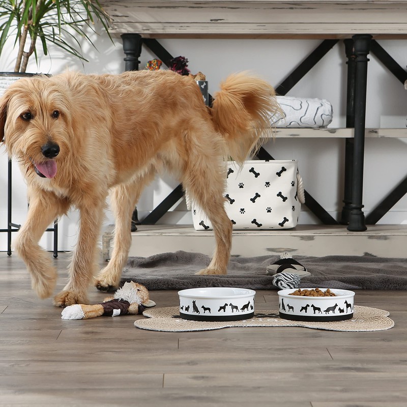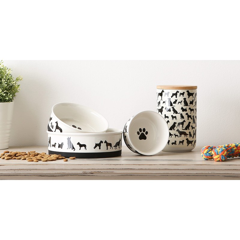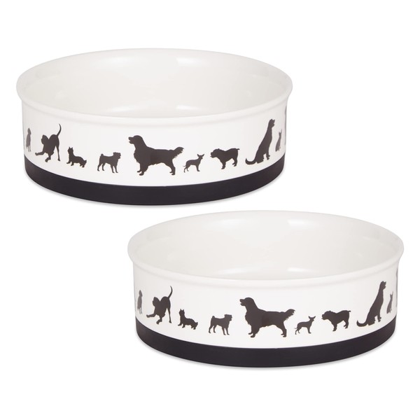 Bone Dry Ceramic Dog Food & Water Bowl Set, Removeable Non-Skid Ring Bottom, Microwave & Dishwasher Safe, Large, 7.5x2.4, Black/White, 2 Count