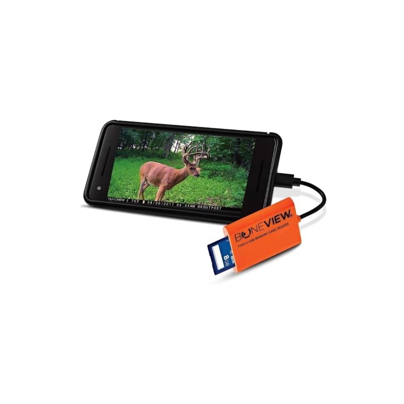 BoneView Lector de tarjetas SD, visor de cámara USB tipo C, reproduce video fotográfico de caza de ciervos en teléfono o tableta Android