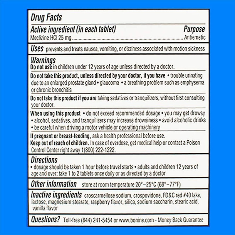 Bonine Raspberry Chewable Tablets for Motion Sickness, 16 (2 Pack), 16 Count (Pack of 2)
