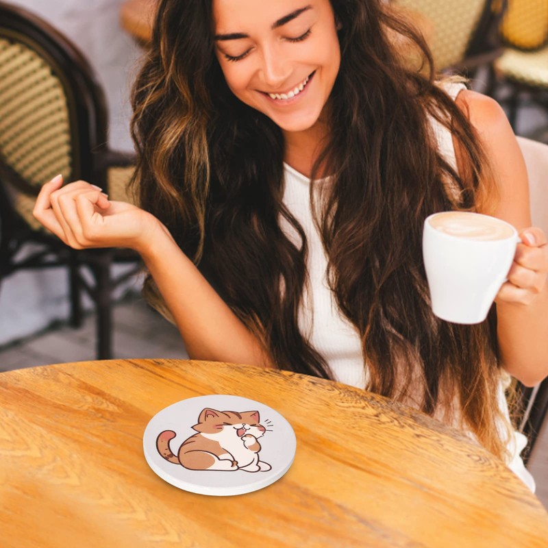 Bonito juego de 6 posavasos de regalo para amantes de los gatos con soporte, posavasos de cerámica para mesa, posavasos con temática de gato, regalos Kawaii, decoración de anime, computadora, bebidas,