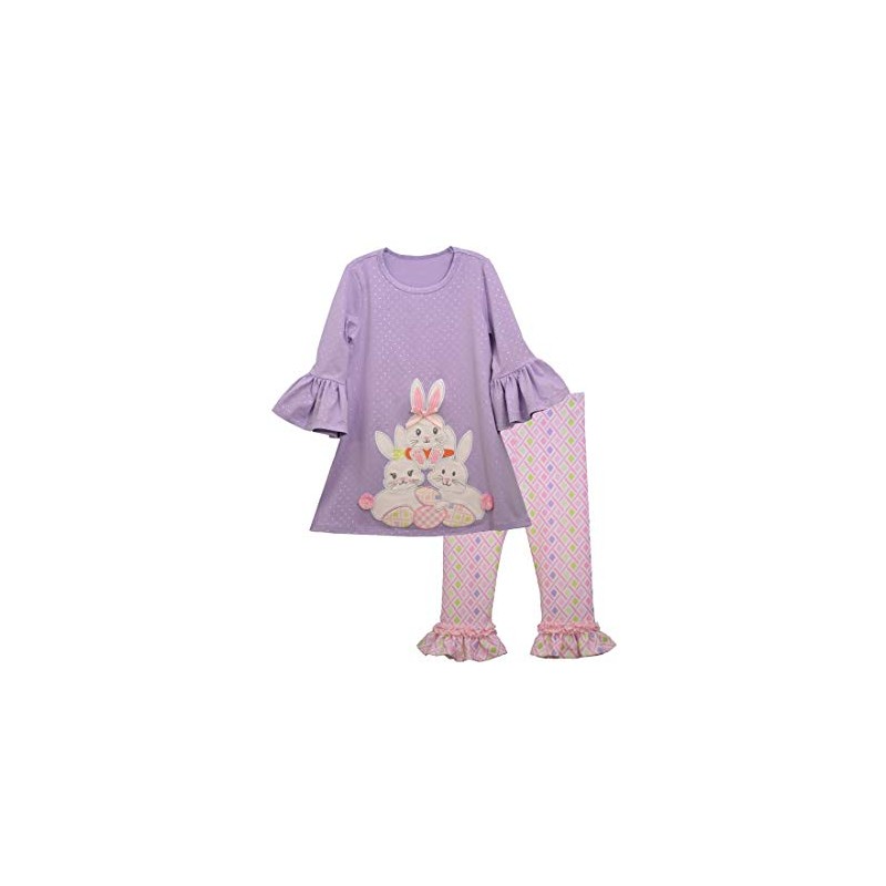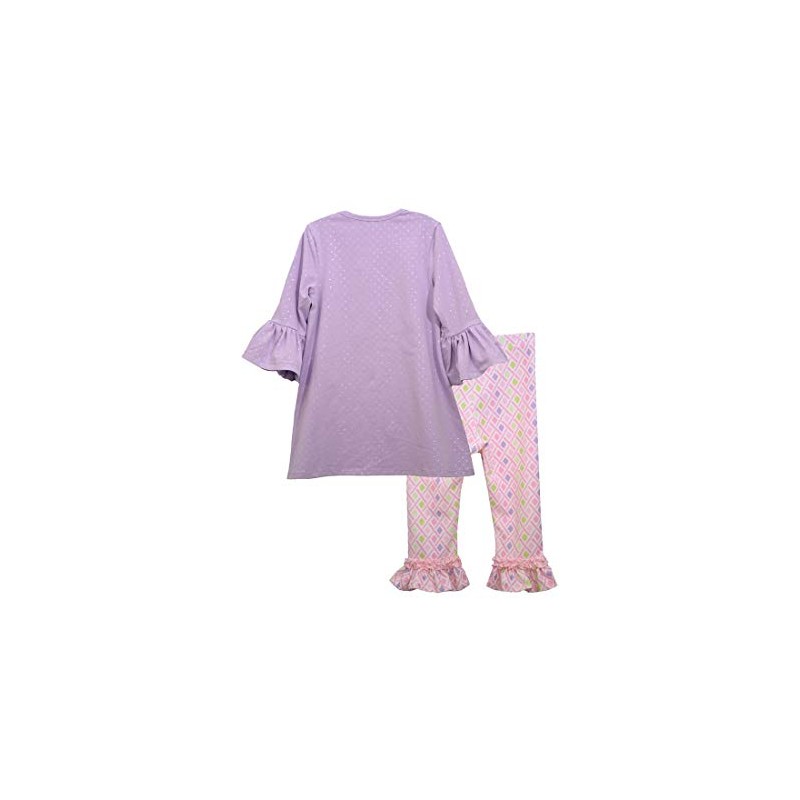 Bonnie Jean Lavender Pink Geo Foil Dot Easter Bunnies Ruffled 2 Piece Capri Set (6X)