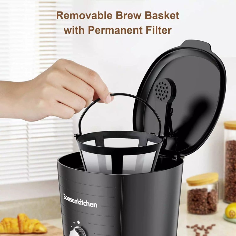 - 【One-Press Operation】 Enjoy ice and freshly brewed coffee fast with Bonsenkitchen compact 700-Watt coffee maker. The one-press operation allows you to quickly and easily brew refreshing iced coffee or flavorful hot coffee exactly how you like it in less than 4 minutes.