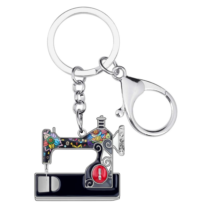 BONSNY Enamel Metal Novelty Sewing Machine Key Chains For Women Girl Gift Car Purse bag Rings Charms (Grey)