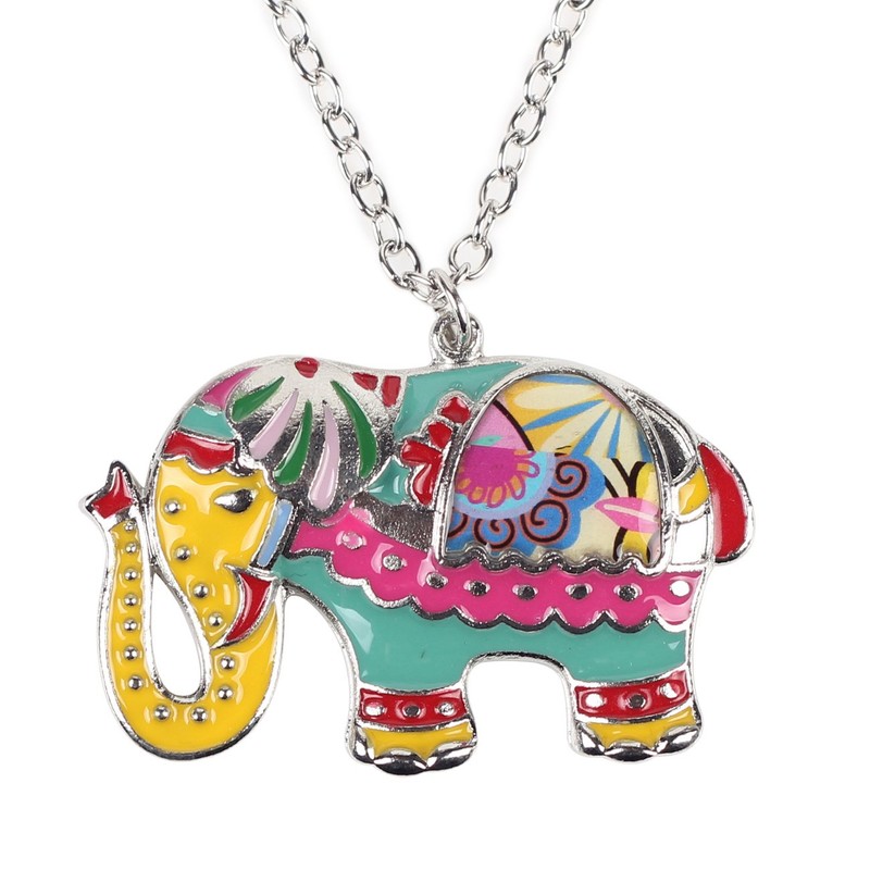 BONSNY Love Colorful Enamel Zinc Alloy Metal Elephant Necklace Pendant Jungle Animal pendant Gifts (Multicolor)