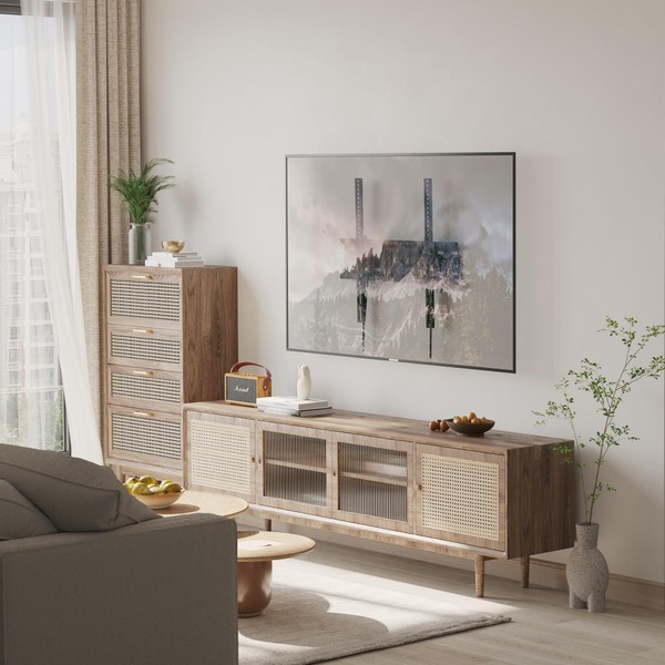 • ULTRA SLIM DESIGN: This low profile TV wall mount keeps your TV just 1.18 inches from the wall for a sleek and modern look, perfect for saving space and enhancing the aesthetics of any room