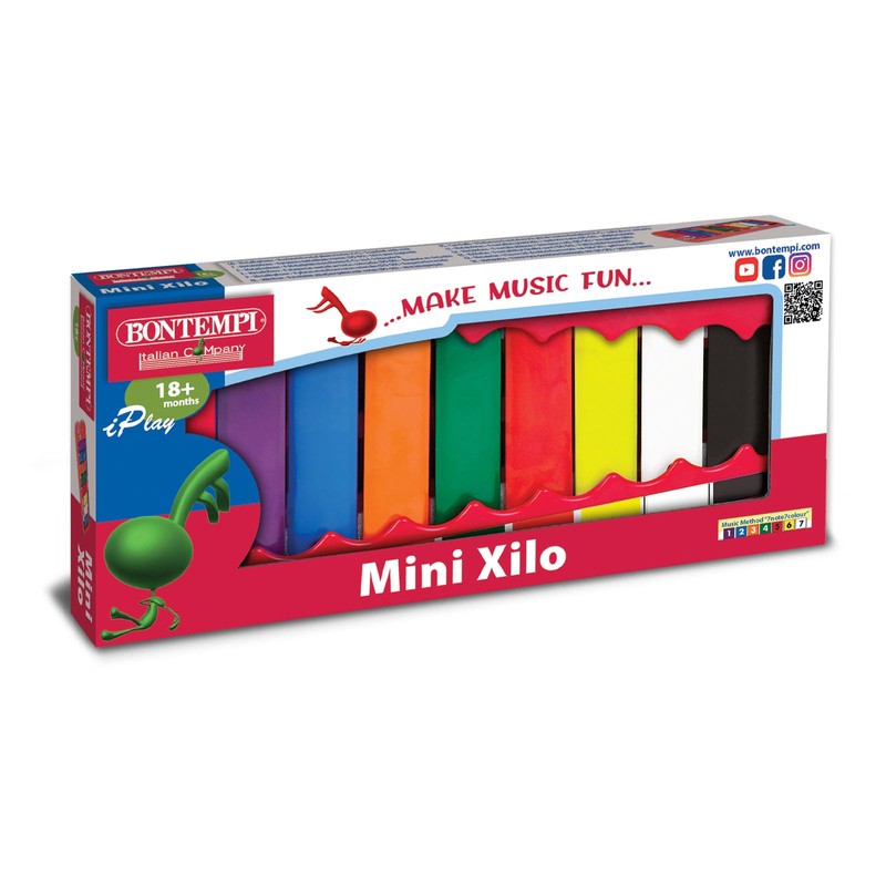 Bontempi 55 0833 Xylophon mit 8 farbigen Metallplättchen/Noten (C-C). Maße: 240x105x20 mm, Mehrfarbig