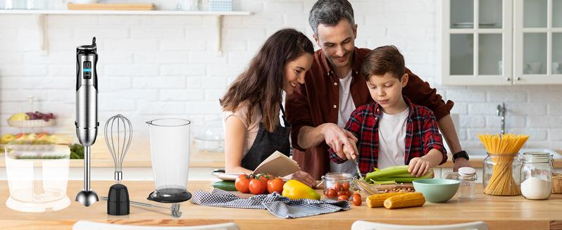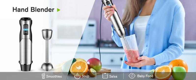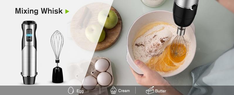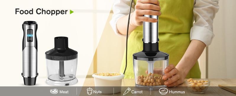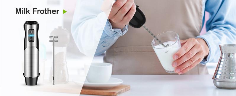 Bontique Immersion Handheld Blender, 5-in-1 Set Multipurpose Mixer Hand Blender, 400W 12-Speed Food Processor 600ml Beaker, 500ml chopper, Egg Whisk and Milk Frother, Black