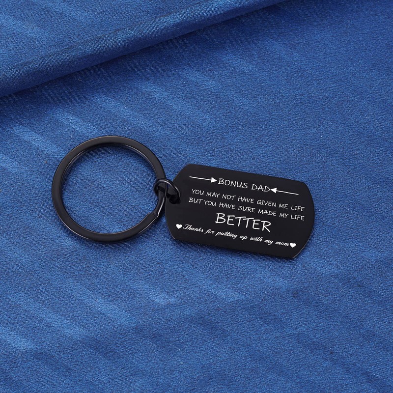 - Stepdad Gifts: The keyring is engraved with "Bonus Dad, you may not have given me life, but you have sure made my life better. Thanks for putting up with my mom". It is the perfect gift for your stepfather to express your love.