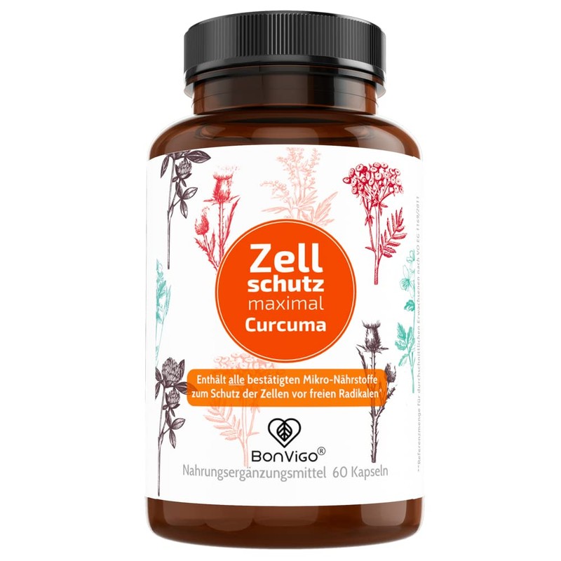 BonVigo Curcuma cell protection extremely capsules follow the principle of embedding micronutrients into a base of valuable plant extracts. That's why our cell protection expert formula contains the much appreciated and already known from natural medicine of Ayurveda in two forms with different biovalue, turmeric extract and turmeric powder.