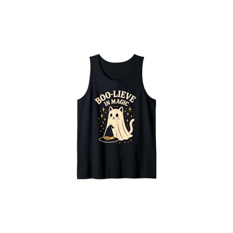 - Cute cat ghost with stars and a witch hat. Includes the phrase “Boo-lieve in magic”! Nice grafic for Fans of lantern-lit nights, friendly frights and crisp autumn air with the title: Boo-lieve in Magic Cat.