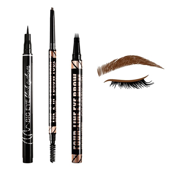 - Product Includes:This combo contains a dual-ended eyebrow pencil, a micro 4-fork Tip eyebrow pen and an eyeliner to fulfill all your daily eye makeup needs, from natural eyebrows to delicate eyeliner, it's easy to create the perfect makeup look.
