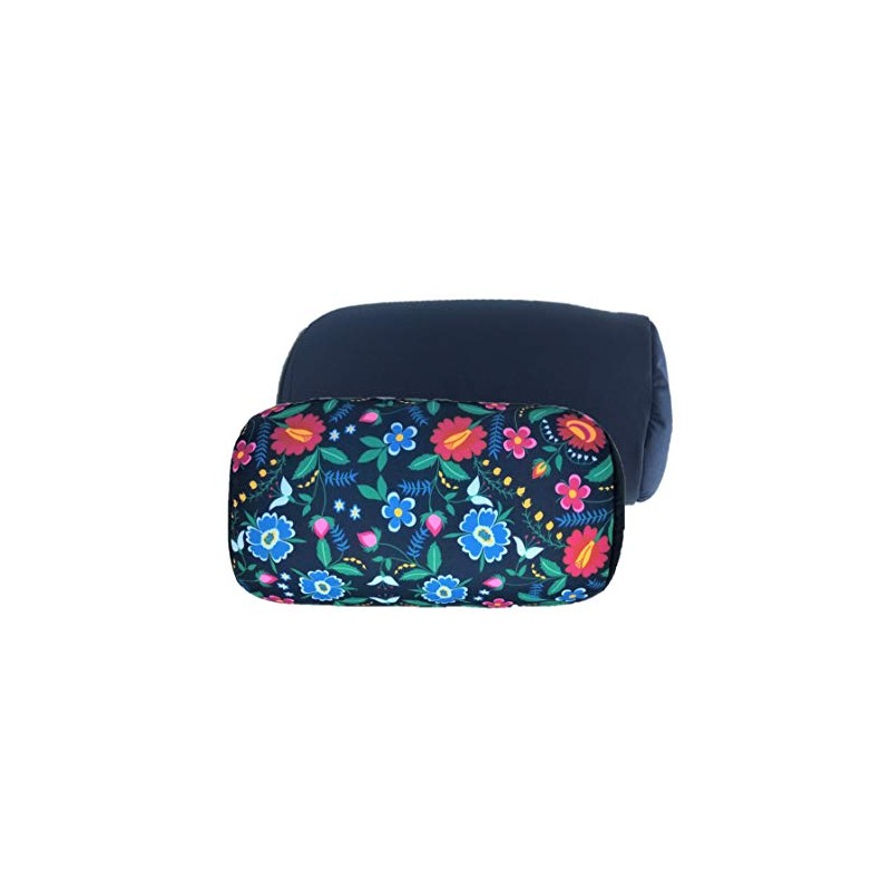 Bookishbunny 2pcs Micro Bead Microbead Roll Pillow Cushion for Bed Back Neck Head Body Support, 13" x 7", Various Designs (Navy+Flower)