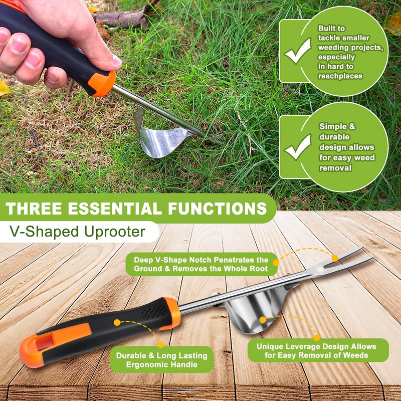 - 【Tips 】- Our gardening hand tools are build to last. This gardening weeding tool made with premium quality stainless steel that is both sturdy, polished, so it can be used normally for years to come.