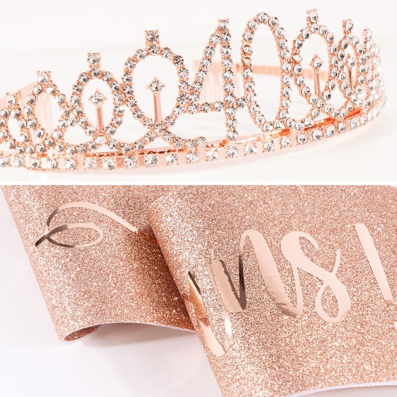 BOOMTOP Französisch Geburtstag Schärpe und 40. Geburtstag Haarreif Geburtstag Haarschmuck Damen Frauen Rosegold Party Accessoires