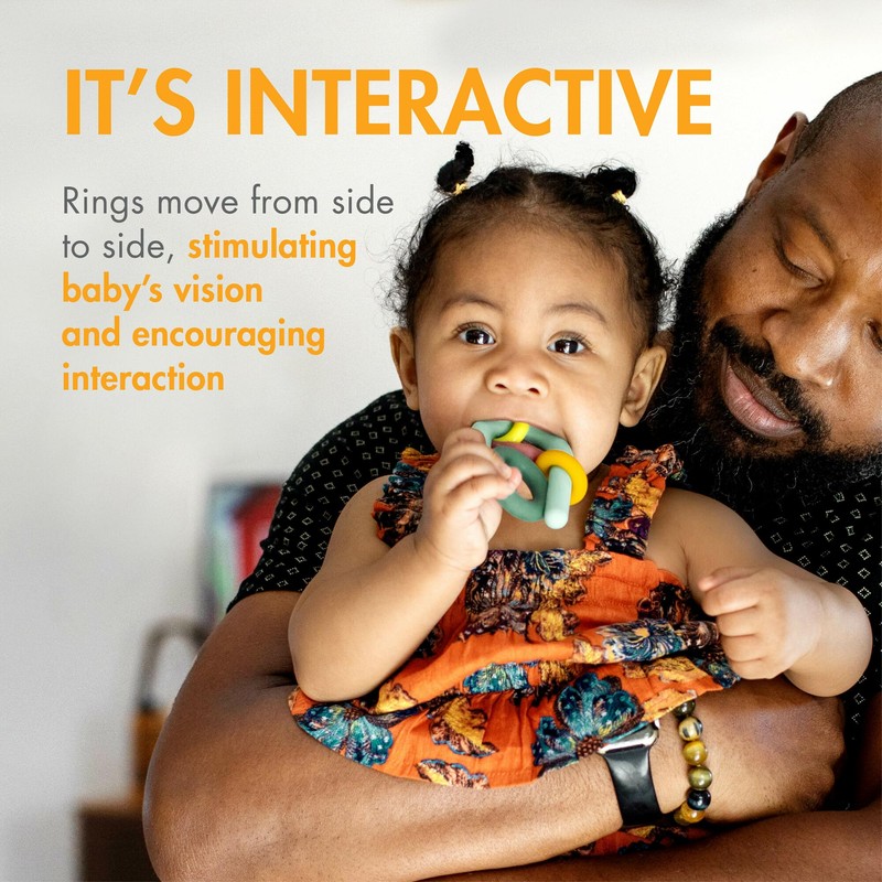 - Interactive Toy: The design of the Hoop teething toy is designed with rings that move from side to side, stimulating your baby’s vision and encouraging interaction