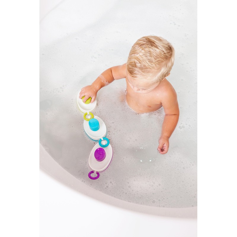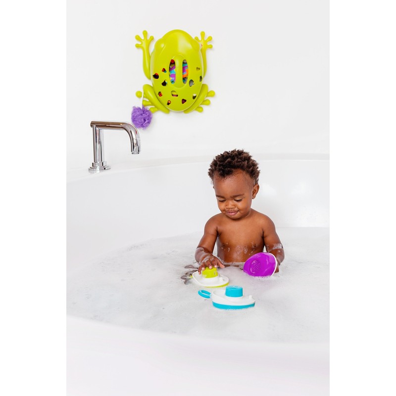 - Juguetes de baño para niños: el juego de juguetes Boon incluye tres botes de juguete coloridos, cada uno con tonos de silbato únicos