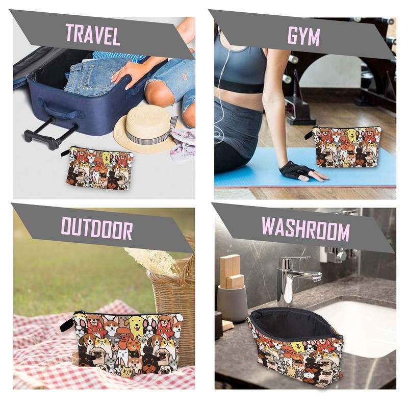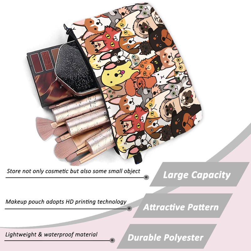 - ATTRACTIVE DESIGN:Personalized puppy print makeup pouch organizer adopts HD printing technology, has a stylish pattern and there are kinds of cute, elegant, funny, lovely little cosmetic bags for your choice, it is the perfect item for every season all the year