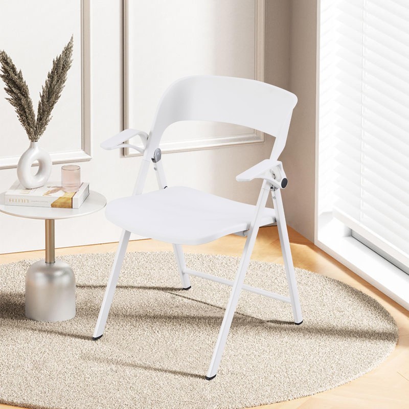 BOOSDEN Plastic Folding Chair with Armrest, Folding Chair 2 Pack, Folding Chairs for Outside, Chairs for Party Events, Fold Up Chairs for Inside, Foldable Chairs, Office Chair, White