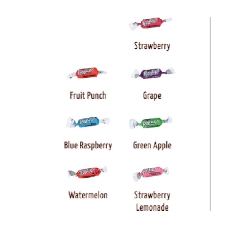 - Frooties candy flavors may include green apple, blue raspberry, fruit punch, grape and strawberry