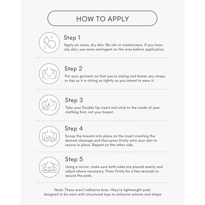 - Reusable, Sweatproof, Increase up to 2 cup sizes , 100% medical grade silicone, Double-sided adhesive , Rinse with mild soap and water
