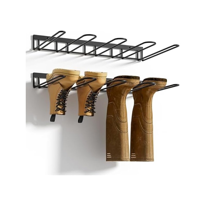 Boot Rack, Wader Hangers for wall, Metal Wall Mounted Shoe Racks, 4 Pair Boot Organizer for Tall Boots and Cowboy shoes, Boots Trays for Entryway,Garage (2 Pack)