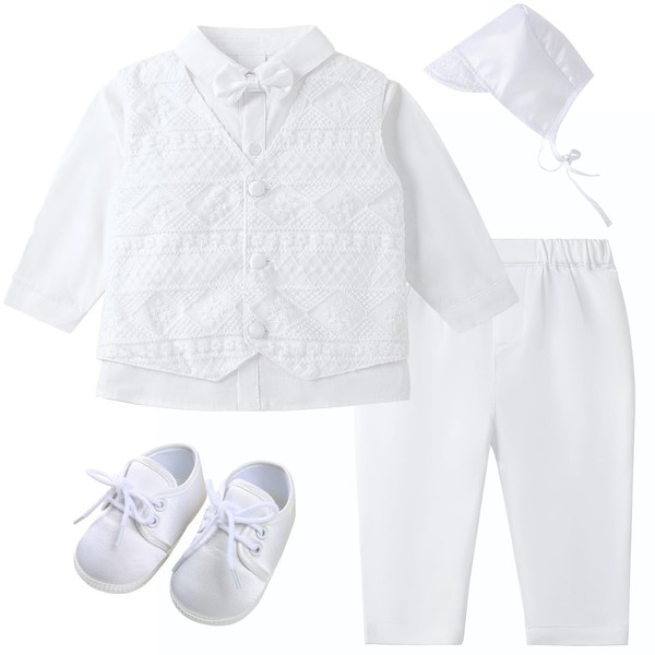 Booulfi Baby Boy's 5 Pcs Set Christening Baptism Outfits 3-6 Months White