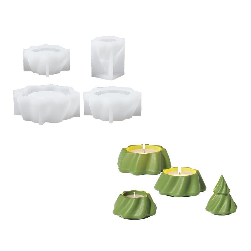 BOOWAN Nicole Stacking Christmas Tree Stackable Candle Vessels with Lid Silicone Molds, Modular Christmas Tree Candle Jar Silicone Moulds for Jesmonite Concrete Cement Gifts for Christmas