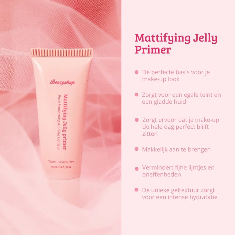 The Boozyshop Mattifying Jelly Primer is the key to a flawless, matte complexion. Infused with coconut oil and aloe vera extracts, this primer offers intense hydration, soothing properties, and a matte finish. The formula is specially developed to prep your skin for long-lasting makeup application while eliminating excess shine.