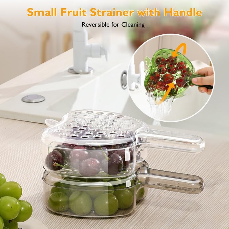 BOPOREAE Multifunctional Fruit and Vegetable Washing Bowl with Lid, Fruit Drainer Container with Handle, 2 In 1 Drainer and Strainer, Mini Plastic Colander, Mini Berry and Tomato Grape Washer