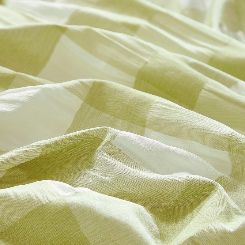 - Material: A side: 100% seersucker microfibre, B side: 100% washed microfibre. Are you tired of smooth, simple duvet covers without a sense of design? Now our designers have studied for a long time and designed a seersucker fabric with chequered country house style. This fabric has a layer of wrinkled seersucker that brings a unique sense of elegance. It feels fluffy, soft, wrinkled and cooling.