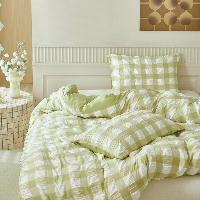 4. Simple checked seersucker bed linen set brings glamorous comfort and style to your bedroom.