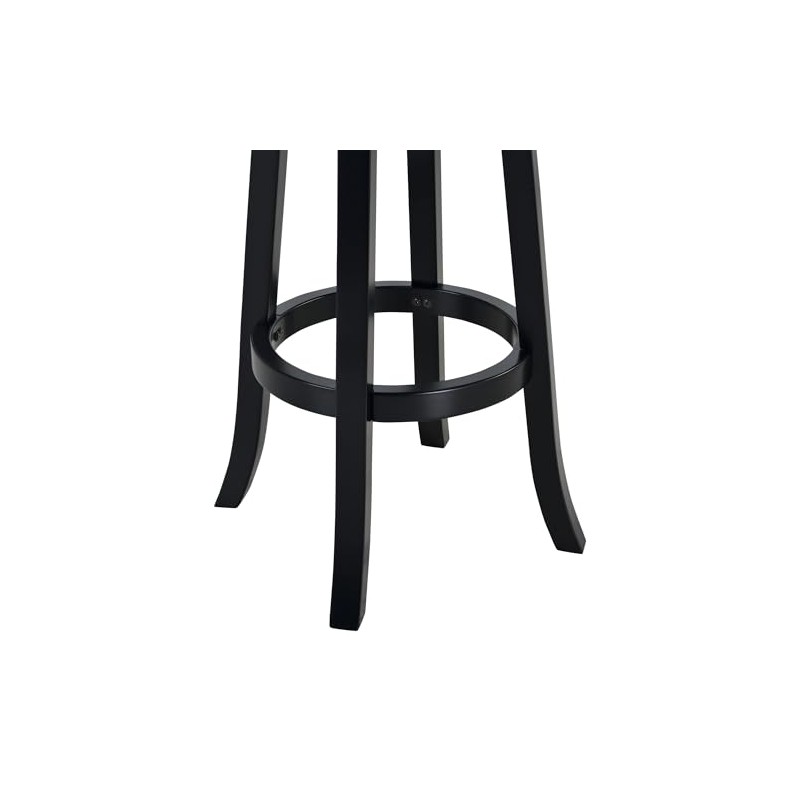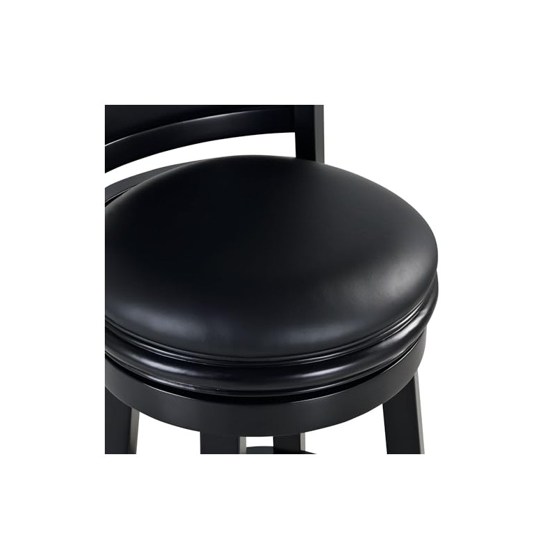 Bring classic style and elevated seating to your home bar or kitchen island with this Augusta swivel bar stool. This stool showcases a uniquely designed backrest, a beautifully carved seat apron, flared legs, and faux leather upholstered seat and back to give it a soft touch so you can settle into that long conversation with your friends over a glass of wine. The seat and back are filled with high-density foam and upholstered in warm faux leather for a refined touch, while the rich wire-brush finish highlights the natural grain of the wood. This stool also has a wood footrest that holds up in the busiest of homes. Plus, we love that its armless design means you can slide this stool underneath your countertop when not in use. The smooth glide 360-degree swivel function allows you to change directions with ease, making this your new favorite stool in your home!