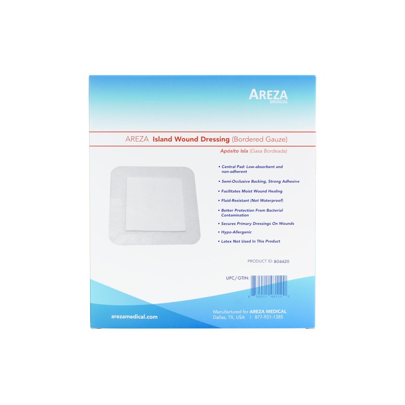 Areza Medical - Bordered Gauze Island Dressing - Wound Dressing - Latex Free - sterile - 6" x 6" - 20 per Box - FSA/HSA Approved