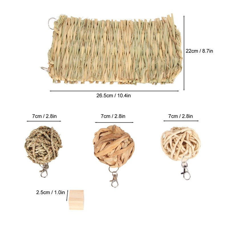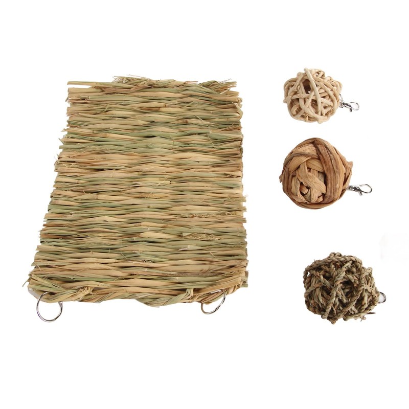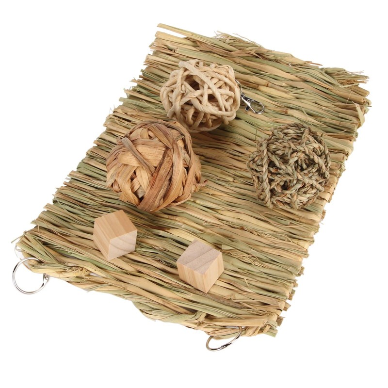 - Detachable and easy to install: Our grass bed mat is detachable and the mat can be used separately, making it very convenient for you to clean and replace. It also comes with a fixing rings that can be hung on the top or side of the cage, and the toys can be fixed by hooks. You can easily install and remove the mat and the toys without any tools or hassle.