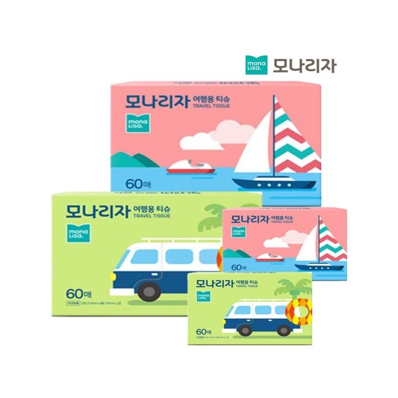 [Bori Bori/Thank You On] Mona Lisa beauty tissue travel size 60 sheets x 20 portable, single item / [보리보리/땡큐온]모나리자 미용티슈 여행용 60매 x20개 휴대용, 단품