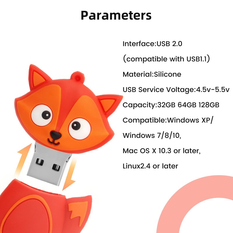• Storage Capacity: 128GB USB Flash Drive x1 Cute fox shaped memory stick, novel and interesting USB flash drive for external data storage.