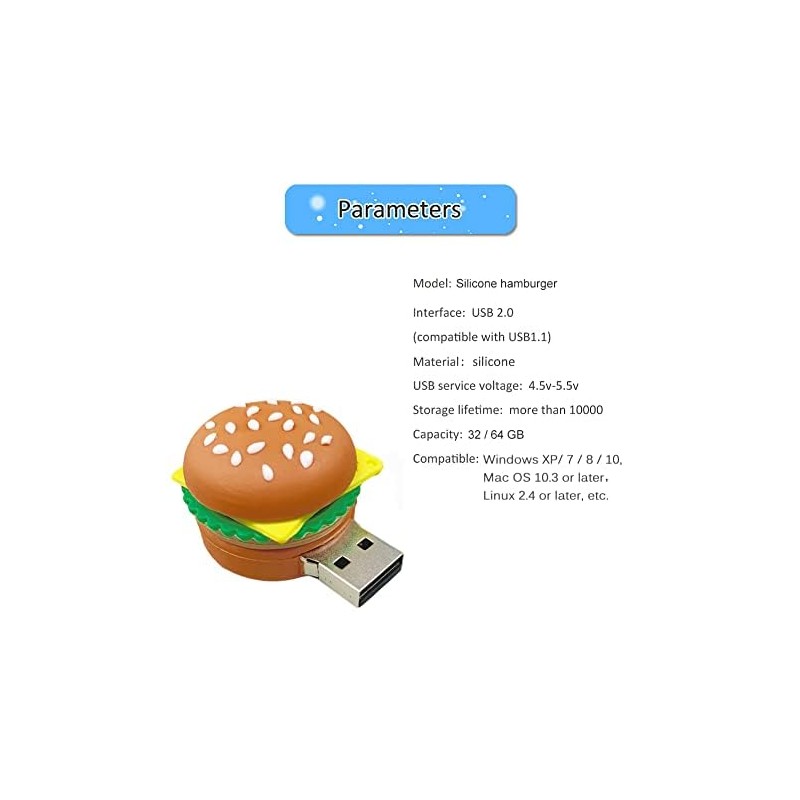 - Storage capacity: 32GB USB flash drive x1 Realistic hamburger shaped memory stick, novelty and interesting USB flash drive for external data storage.